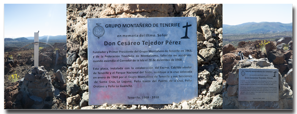 -Sábado 29 de diciembre: excursión al lugar denominado hasta ahora Cruz de Tejedor en el Teide, en la que se inaugurará una placa que lo recuerda sustituyendo a la Cruz, financiada por el Parque Nacional. Paralelamente, se hará una excursión de esfuerzo bajo en otra zona del Parque. Al final todos los montañeros nos reuniremos en nuestro refugio en su recuerdo.